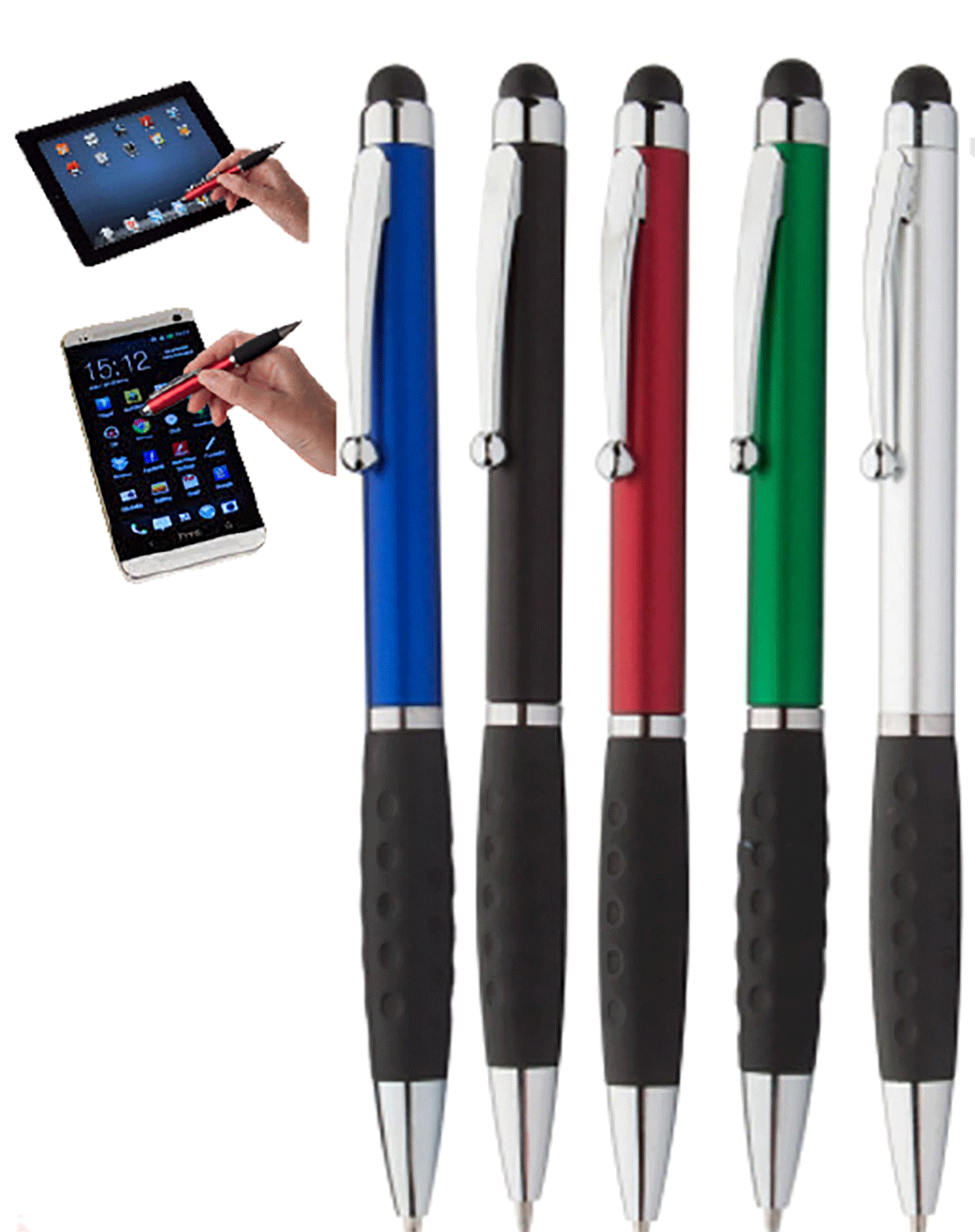 Opis: kemični svinčnik, material plastika, gumiran oprijem, primeren za zaslon na dotik, piše modro. Odlična izbira poslovnih daril za promocijo.