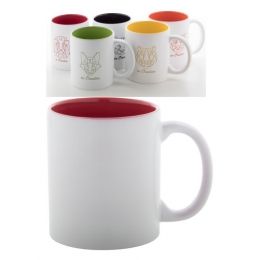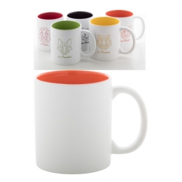 Opis: keramična skodelica bele barve, ki je od znotraj drugačne barve in se na njo gravira. Gravura je iste barve kot notranjost skodelice.