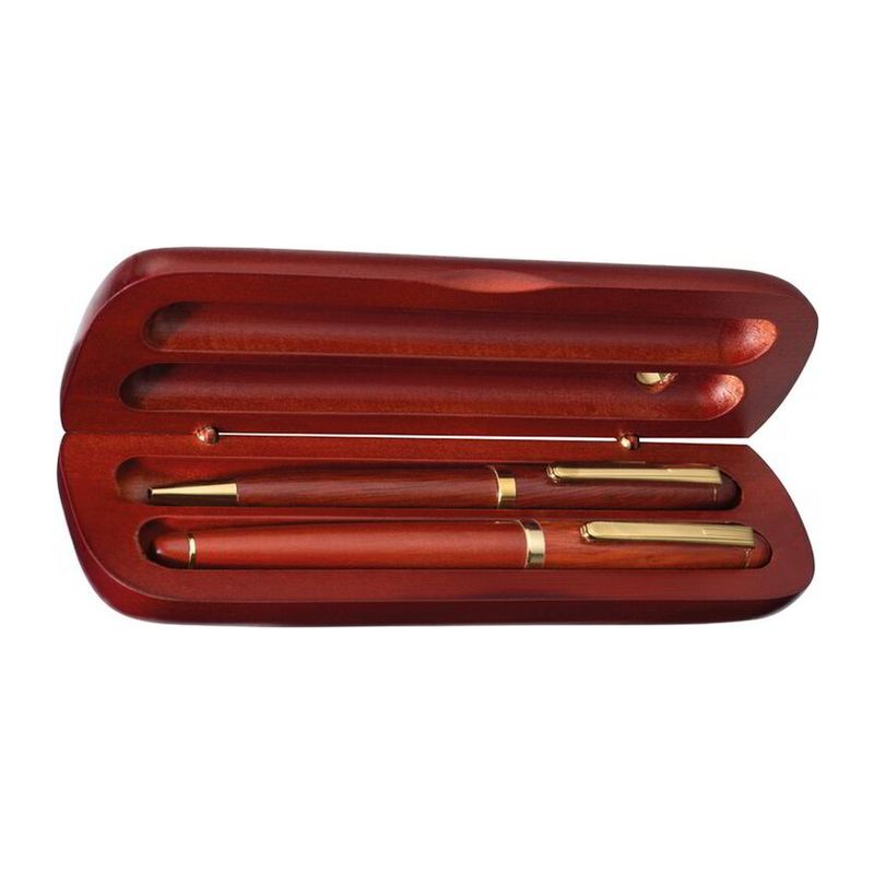 Opis: pisalni lesen set vključuje nalivno pero, kemični svinčnik in darilno škatlico elegantnega videza. Minica kemičnega svinčnika je modre barve. Trajno poslovno darilo za vse poslovne partnerje, ki cenijo naravo in naravne materiale.