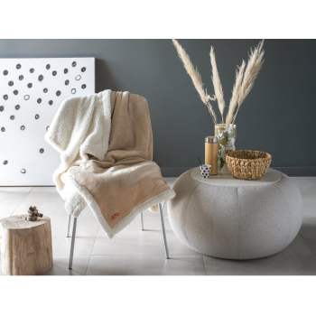 Opis: topla odeja mehkega otipa, svetlo rjava stran flanela, 200 g/m2, bela stran sherpa, 180 g/m2.